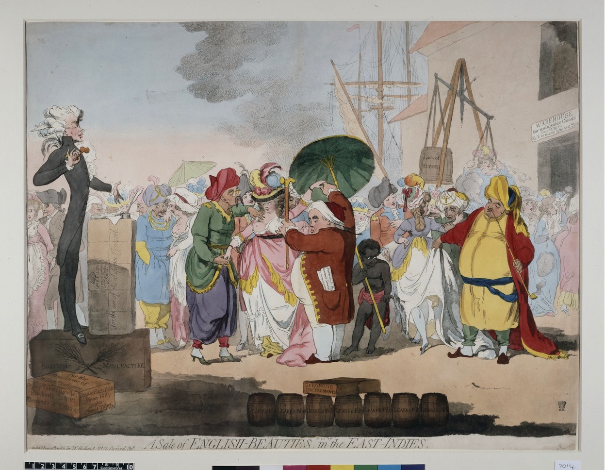 fig. 10 James Gillray (printmaker), A Sale of English Beauties in the East Indies (1786), published by William Holland, London, etching and aquatint, 41.7 x 53.0 cm, British Museum, London